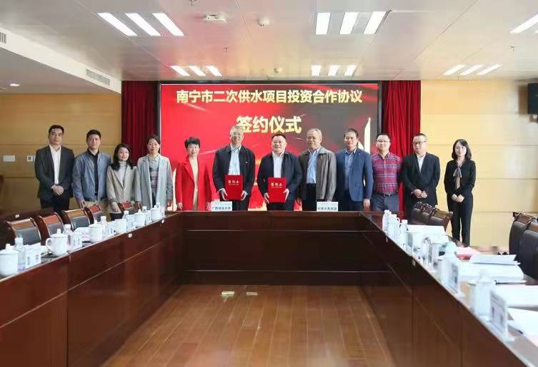 強(qiáng)強(qiáng)聯(lián)合,攜手并進(jìn),為城市二次供水安全注入強(qiáng)勁力量。12月17日下午,廣西綠城水務(wù)股份有限公司(以下簡(jiǎn)稱“綠城水務(wù)”)與廣西北投集團(tuán)直屬企業(yè)北投環(huán)保水務(wù)集團(tuán)(下簡(jiǎn)稱“北投環(huán)保水務(wù)”)舉行南寧市二次供水項(xiàng)目投資合作協(xié)議簽約暨廣西二次供水投資建設(shè)有限公司成立儀式,標(biāo)志著南寧市乃至全廣西二次供水市場(chǎng)業(yè)務(wù)規(guī)范化發(fā)展將邁上新臺(tái)階,城市安全供水“最后一公里”將更有保障。