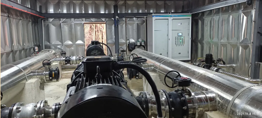 (圖為長(zhǎng)虹路臨時(shí)供水加壓站內(nèi)景圖)