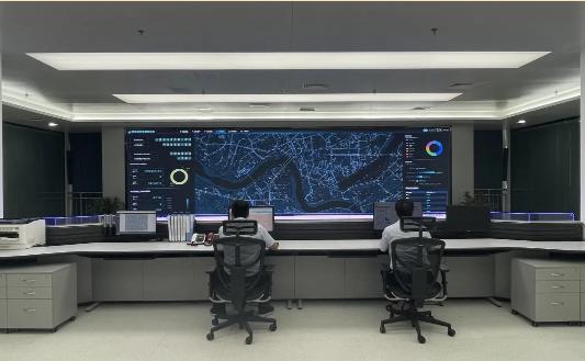 (圖為2021年2月正式投入使用的水務(wù)調(diào)度指揮中心,擔(dān)任全市水務(wù)運(yùn)營(yíng)的指揮官角色。)