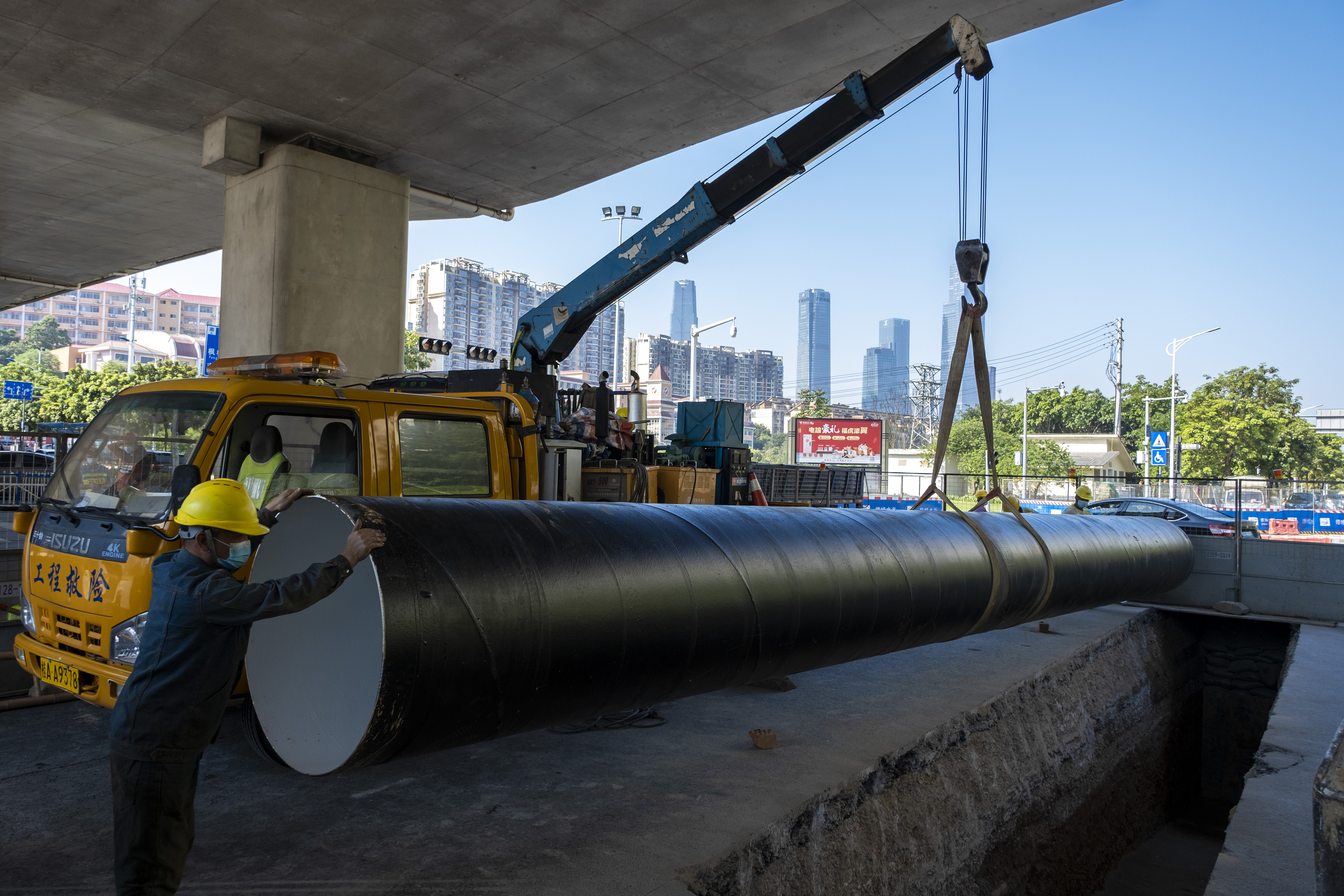 ▲“壯族三月三”小長假期間,綠城水務(wù)加快推進(jìn)云景路的DN1000球墨鑄鐵供水管道建設(shè),圖為施工現(xiàn)場(綠城水務(wù) 周寧供圖)
