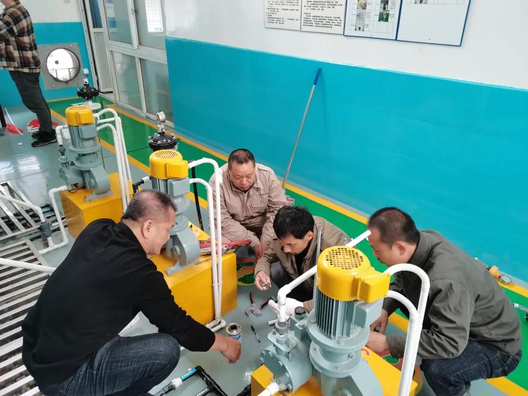 圖為水廠技術(shù)維護(hù)班對供水設(shè)備進(jìn)行保養(yǎng)維護(hù)